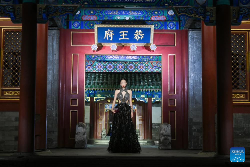 Models present concept creations during a fashion show held at the Prince Kung's Palace Museum in Beijing, capital of China, July 14, 2025. The fashion show is inspired by elements of the Prince Kung's Palace Museum and Chinese intangible cultural heritages, displaying 37 concept creations as well as 35 neo-Chinese ready-to-wear and accessories. (Xinhua/Jin Liangkuai)