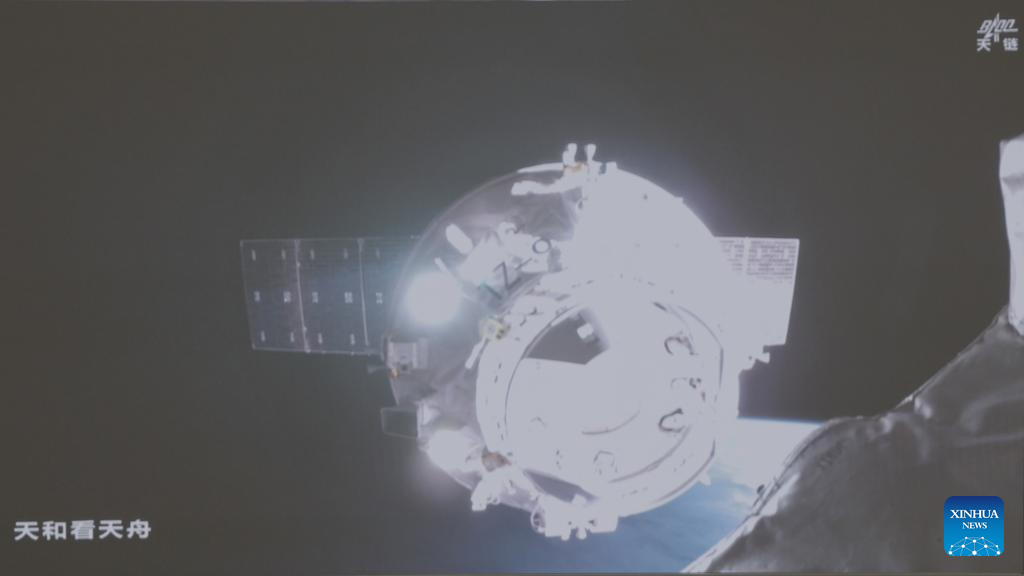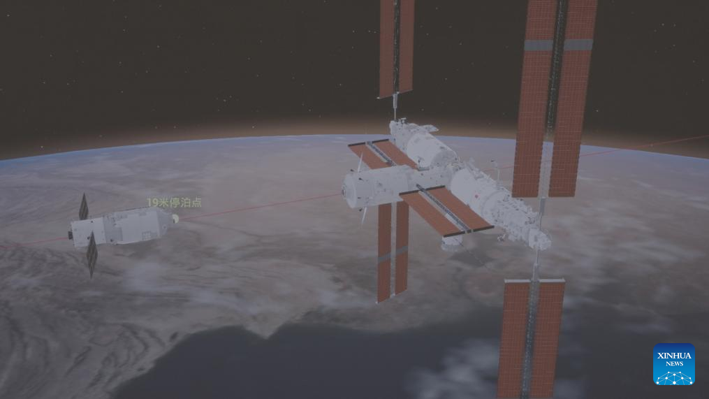 The Shenzhou-20 crew members onboard the space station will enter the cargo craft and transfer the payloads as scheduled. (Photo by Zhou Keyi/Xinhua)