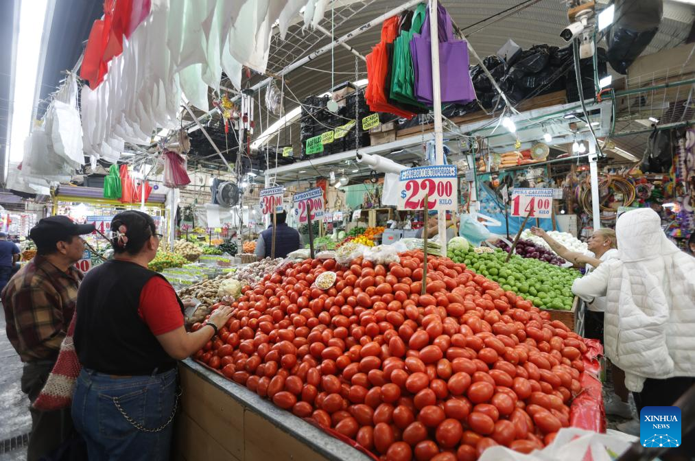 People buy tomatoes at a public market in Mexico City, capital of Mexico, July 14, 2025. The U.S. Department of Commerce announced Monday it is immediately placing a 17.09 percent duty on most fresh tomatoes imported from Mexico, marking a withdrawal from the 2019 agreement between the two countries to suspend the antidumping investigation on fresh tomatoes. (Photo by Francisco Canedo/Xinhua)