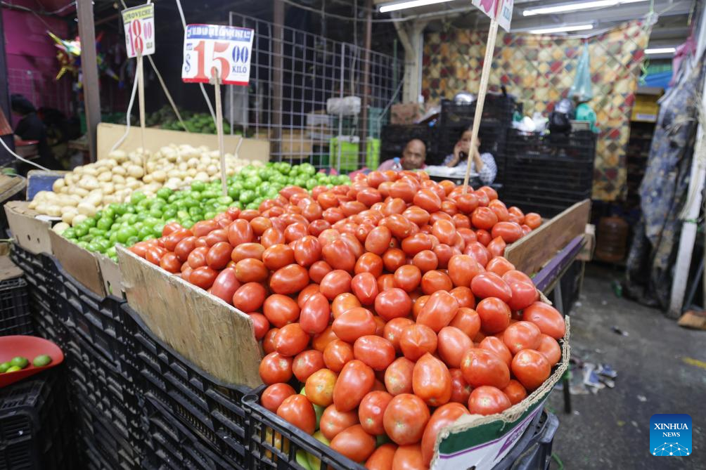 Tomatoes are pictured at a stall in a public market in Mexico City, capital of Mexico, July 14, 2025. The U.S. Department of Commerce announced Monday it is immediately placing a 17.09 percent duty on most fresh tomatoes imported from Mexico, marking a withdrawal from the 2019 agreement between the two countries to suspend the antidumping investigation on fresh tomatoes. (Photo by Francisco Canedo/Xinhua)