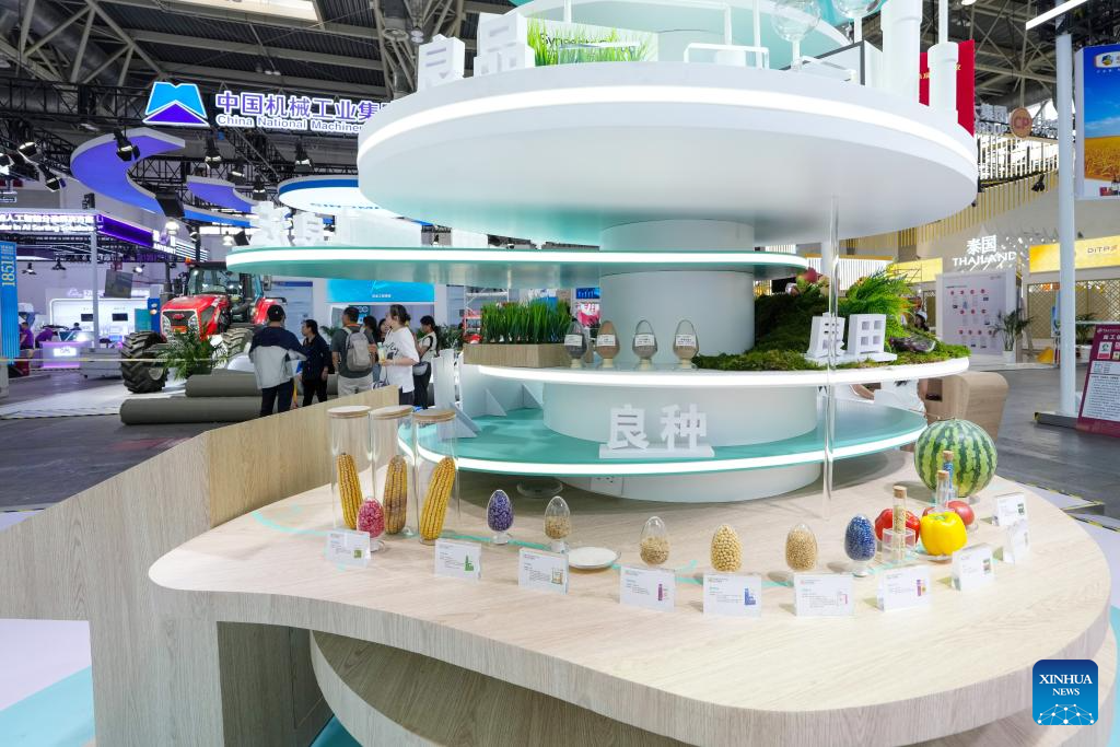 This photo taken on July 14, 2025 shows the booth of Syngenta Group at the green agriculture section of the upcoming third China International Supply Chain Expo (CISCE) in Beijing, capital of China. The third China International Supply Chain Expo (CISCE), scheduled on July 16-20 in Beijing, is expected to focus on supply chains of advanced manufacturing, clean energy, smart vehicles, digital technology, healthy life and green agriculture. (Xinhua/Ju Huanzong)