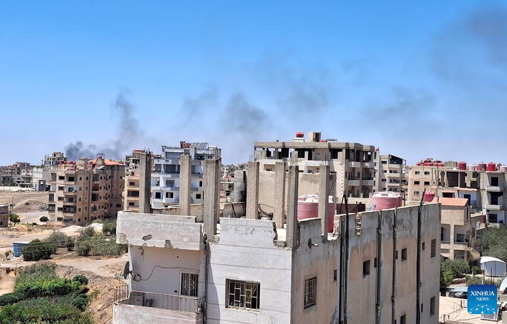 Smoke caused by Israeli airstrikes rises over parts of the city of Sweida, southern Syria, on July 15, 2025. Israeli Prime Minister Benjamin Netanyahu and Defense Minister Israel Katz said on Tuesday they have instructed the military to strike Syrian forces in the southern Syrian province of Sweida, claiming to protect the Druze population there. (Photo by Munther al-Shofi/Xinhua)