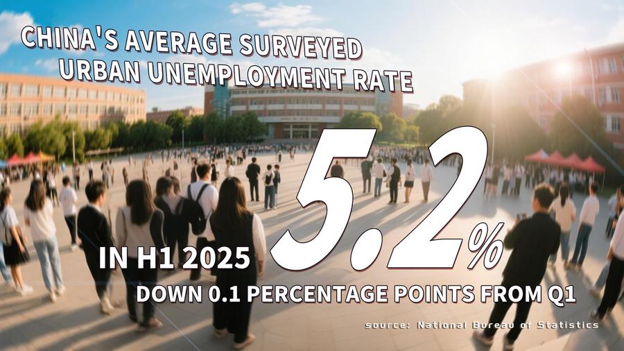 The job market remained generally stable, with the surveyed urban unemployment rate averaging 5.2 percent in the first half, a 0.1 percentage point decrease from the first quarter.
