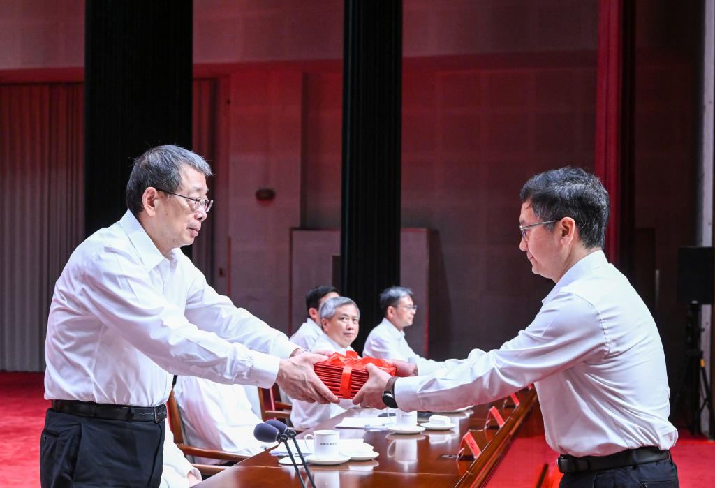 Chen Xi, president of the Party School of the Communist Party of China (CPC) Central Committee (National Academy of Governance), attends a graduation ceremony for the 2025 spring semester and presents certificates to the semester's graduates, July 15, 2025. (Xinhua/Chen Yehua)