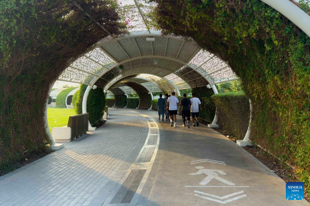 One prominent example is Umm Al Seneem Park, home to one of the world's longest outdoor air-conditioned walking and jogging tracks. The 1.143-km loop is cooled by a sophisticated cooling system. When Xinhua visited the park, residents strolled along the shaded paths, enjoying what one described as "true outdoor freedom in the summer."
