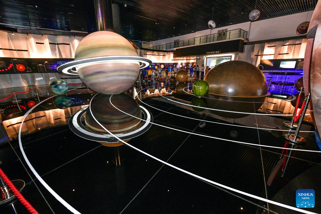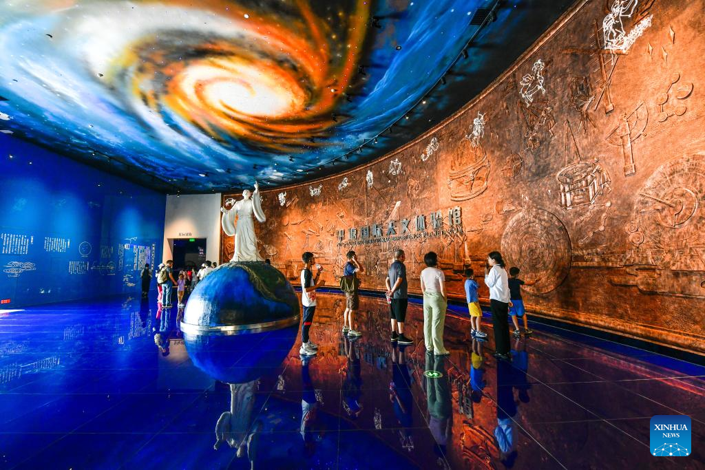 This photo taken on July 10, 2025 shows people visiting a planetarium in Kedu Town, Pingtang County of southwest China's Guizhou Province. (Xinhua/Yang Wenbin)