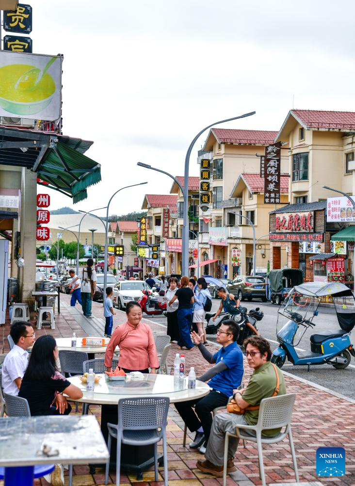 This photo taken on July 9, 2025 shows visitors about to have a meal at a food court of the "Astronomy Town" in Kedu Town, Pingtang County of southwest China's Guizhou Province. (Xinhua/Yang Wenbin)