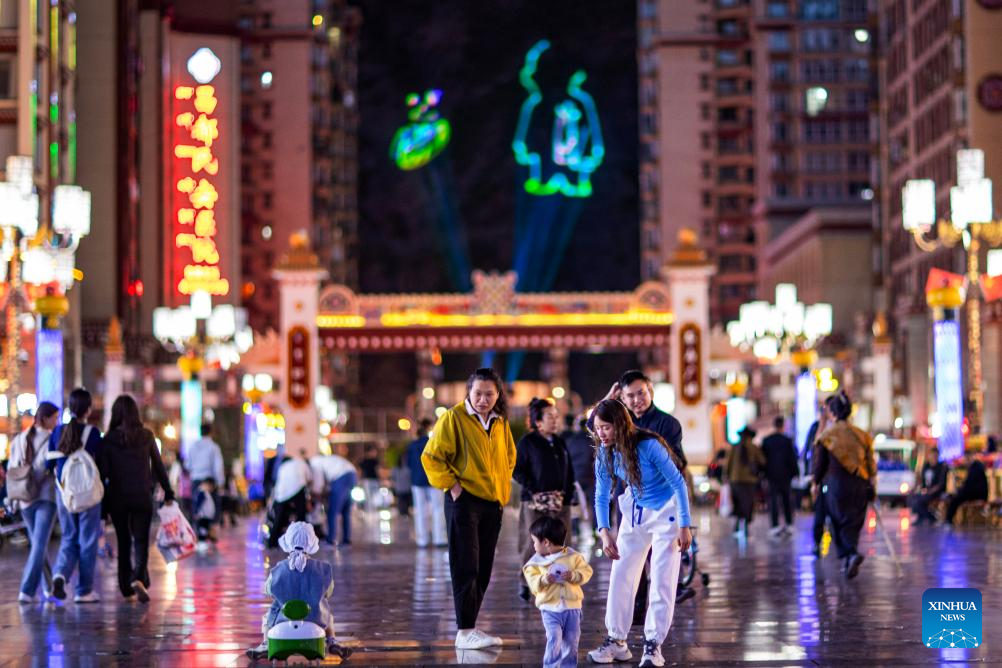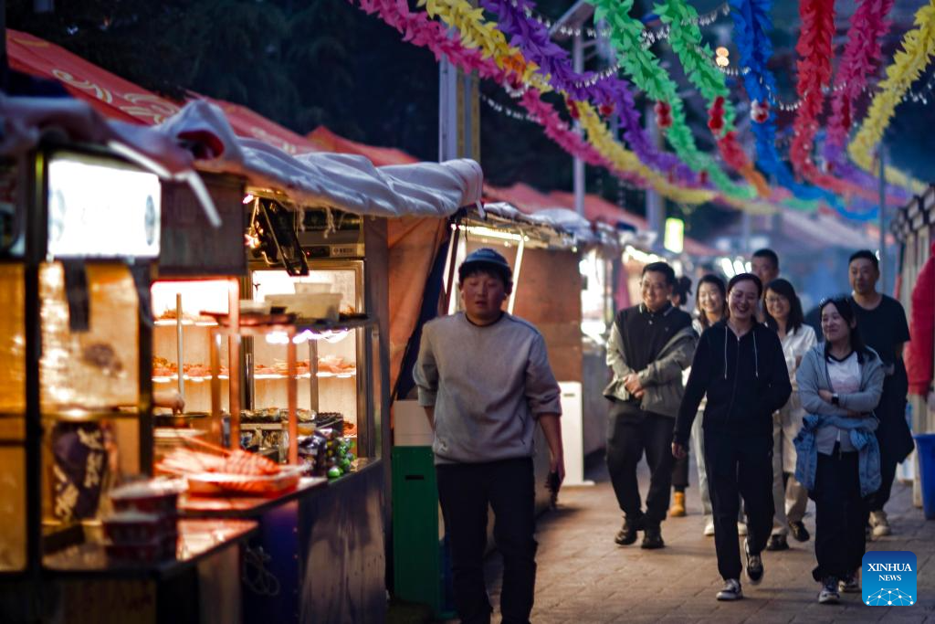 This photo taken on June 21, 2025 shows a night market in Qamdo City, southwest China's Xizang Autonomous Region, June 21, 2025. (Xinhua/Jiang Fan)
