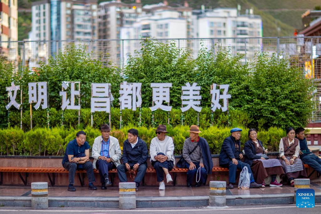 Citizens relax at a square in Qamdo City, southwest China's Xizang Autonomous Region, June 21, 2025. (Xinhua/Jiang Fan)