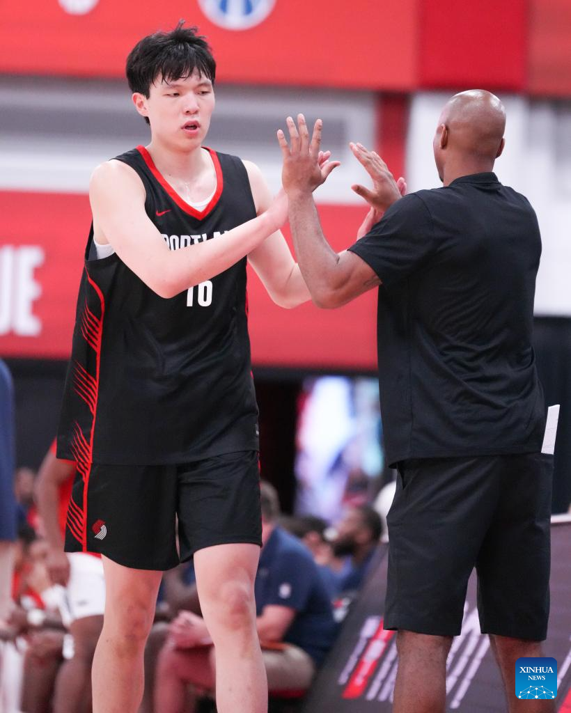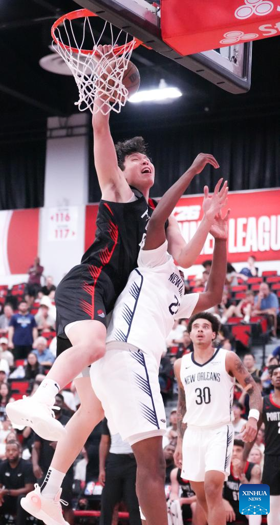 LAS VEGAS, United States, July 15 (Xinhua) -- Chinese center Yang Hansen, the Portland Trail Blazers' rookie, scored 15 points on Tuesday, leading the Blazers to a 93-87 victory over the New Orleans Pelicans in the NBA Summer League.
