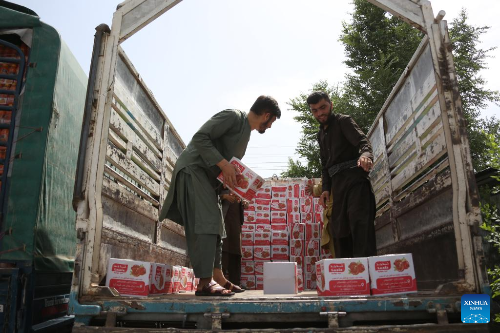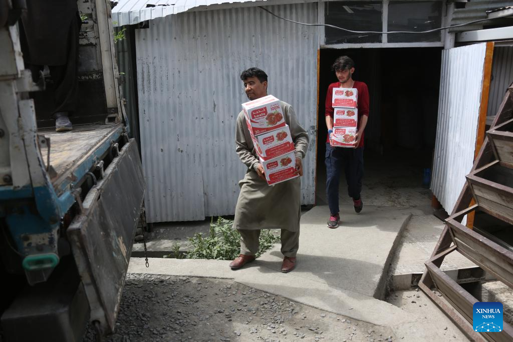 Workers load expired and low-quality food items in Kabul, the capital of Afghanistan, July 15, 2025. Afghan authorities collected and destroyed 65 tons of expired and low-quality food items in the capital Kabul on Tuesday, officials from the Ministry of Public Health said. (Photo by Saifurahman Safi/Xinhua)