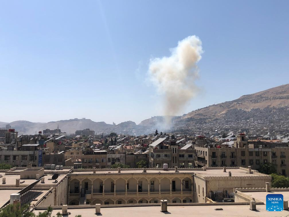 Smoke is seen over Damascus after an Israeli strike hit the Syrian Army General Command headquarters in central Damascus, Syria, July 16, 2025. Israel on Wednesday bombed the Syrian military headquarters compound in the capital Damascus, wounding two people, according to Israeli and Syrian sources. (Photo by Ammar Safarjalani/Xinhua)