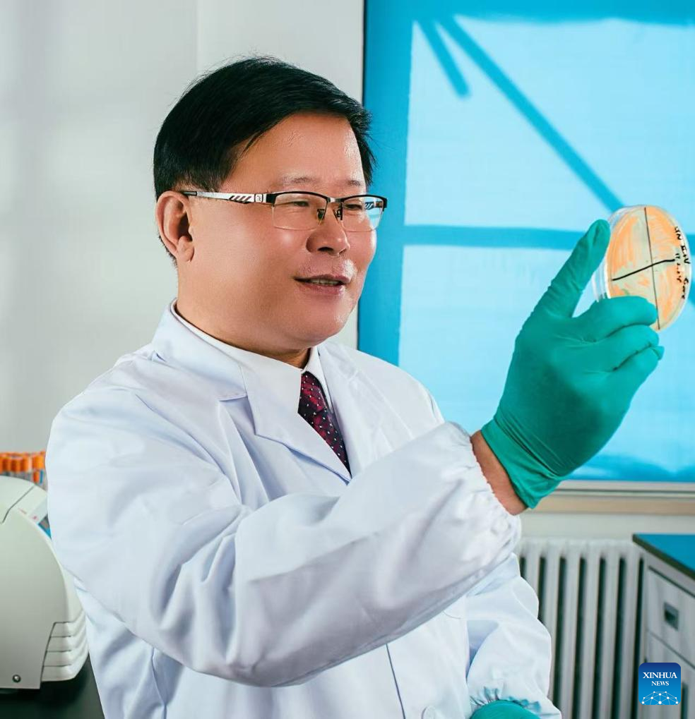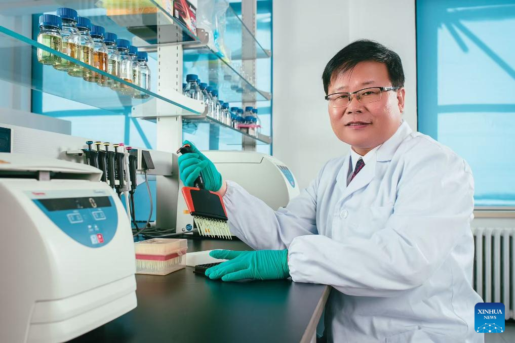 This undated file photo shows Yuan Yingjin, an academician with the Chinese Academy of Sciences, posing for a photo at Tianjin University in Tianjin, north China. A Chinese research team has made a significant leap in the field of synthetic biology by precisely synthesizing and assembling large-scale human DNA and successfully transferring it across species. (Xinhua)