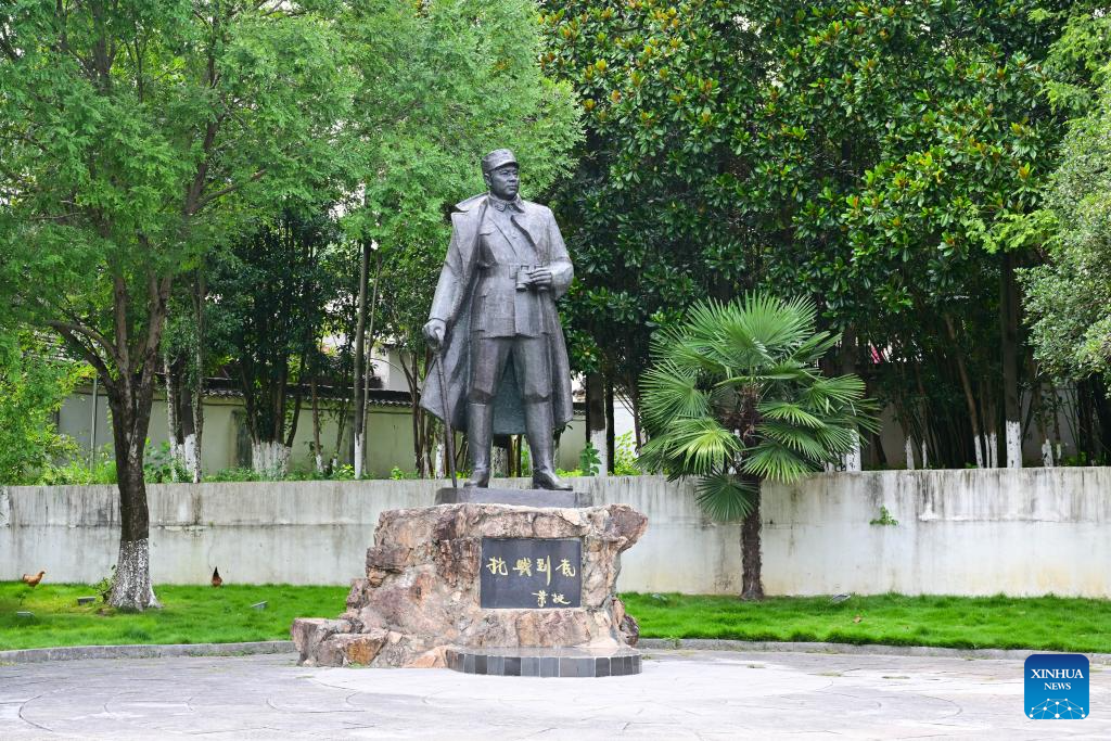 This photo taken on July 14, 2025 shows a statue at the memorial hall of the former headquarters of the New Fourth Army in Jingxian County, east China's Anhui Province. Located in Yunling Township of Jingxian County in Xuancheng City, the memorial hall covers an area of 20,000 square meters. It is one of the important heritage sites under state protection, and was established based on 11 preserved sites that the New Fourth Army headquarters had been stationed in Yunling from 1938 to 1941, during the Chinese People's War of Resistance Against Japanese Aggression. (Xinhua/Gong Bing)