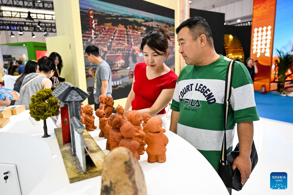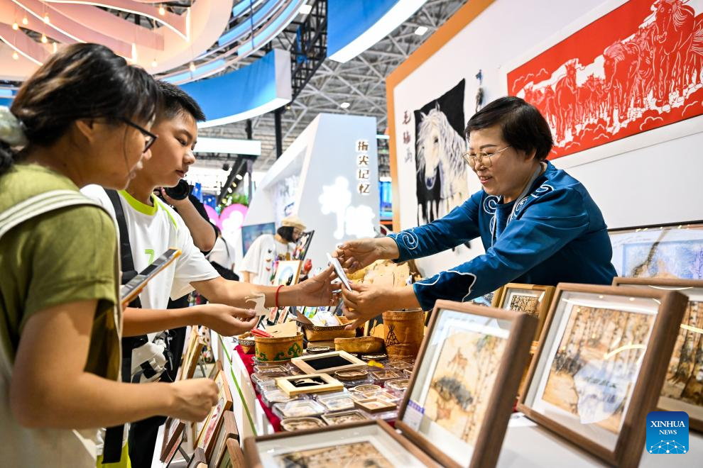 People visit the 9th Inner Mongolia Cultural Industry Expo in Hohhot, north China's Inner Mongolia Autonomous Region, July 17, 2025. The expo, with nine exhibition zones, is held in Hohhot from July 17 to 21. (Xinhua/Li Zhipeng)