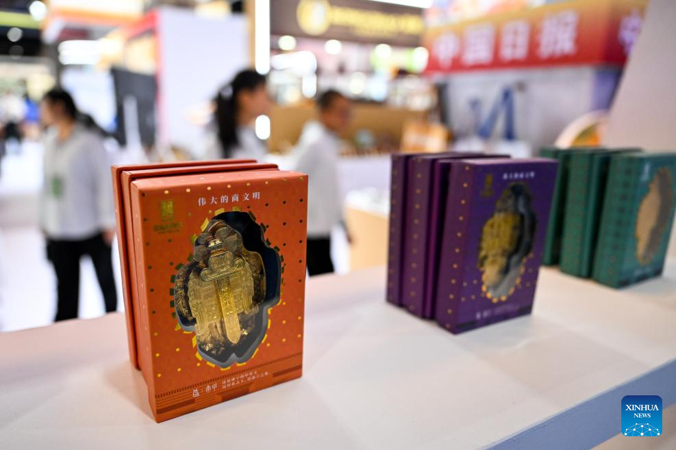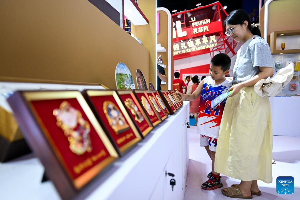 This photo taken on July 17, 2025 shows cultural and creative products displayed at the 9th Inner Mongolia Cultural Industry Expo in Hohhot, north China's Inner Mongolia Autonomous Region. The expo, with nine exhibition zones, is held in Hohhot from July 17 to 21. (Xinhua/Li Zhipeng)