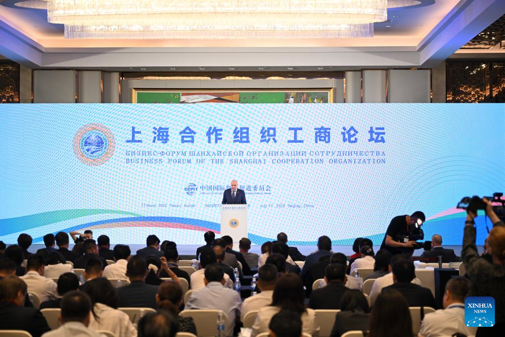 Sergey Katyrin, president of the Chamber of Commerce and Industry of Russia, addresses the opening ceremony of the Shanghai Cooperation Organization (SCO) business forum in Beijing, capital of China, July 17, 2025. Hosted by the China Council for the Promotion of International Trade, the forum attracted nearly 400 participants from government institutions and the business community both at home and abroad. (Xinhua/Jin Liangkuai)
