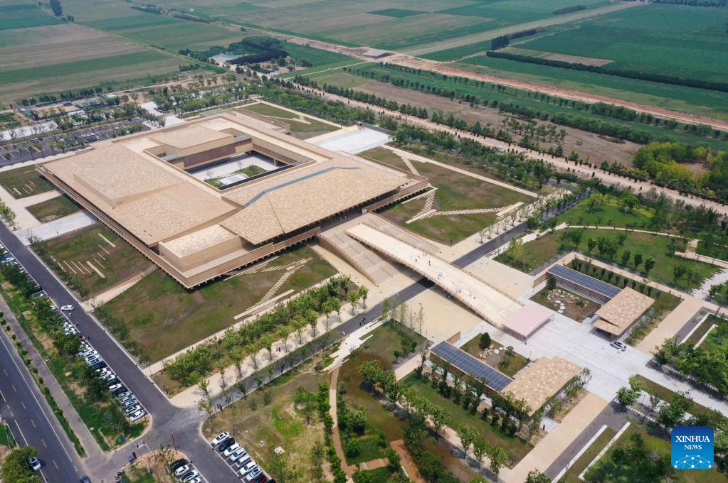 An aerial drone photo taken on July 16, 2025 shows a view of the Han-Wei Luoyang Ancient City Site Museum in Luoyang, central China's Henan Province. The museum showcasing over 1,300 sets of cultural relics opened to public on Wednesday. (Xinhua/Hao Yuan)
