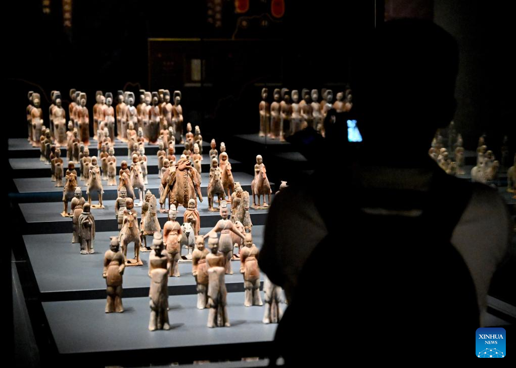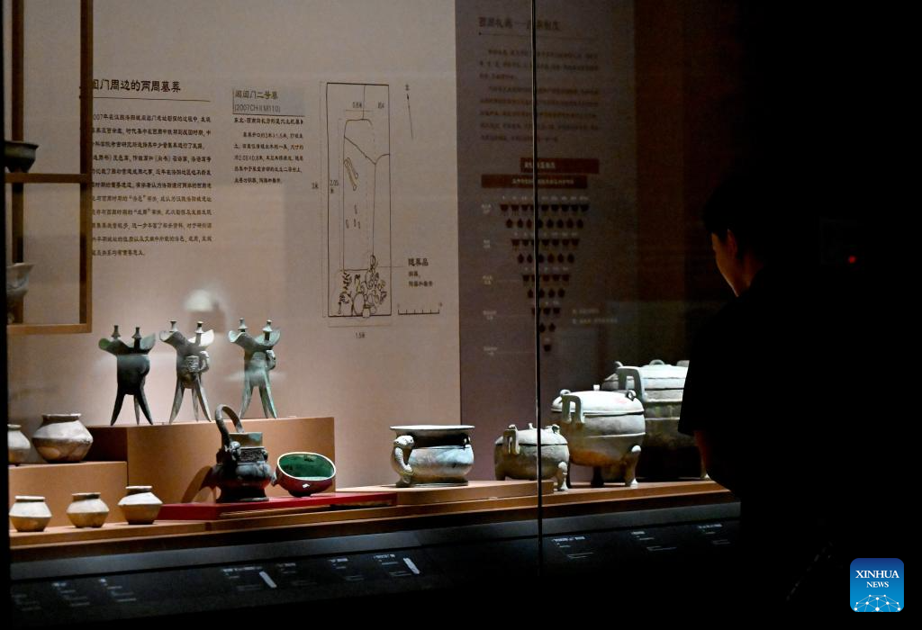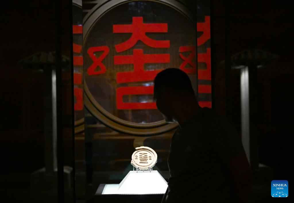 A visitor views an exhibition at the Han-Wei Luoyang Ancient City Site Museum in Luoyang, central China's Henan Province, July 16, 2025. The museum showcasing over 1,300 sets of cultural relics opened to public on Wednesday. (Xinhua/Hao Yuan)