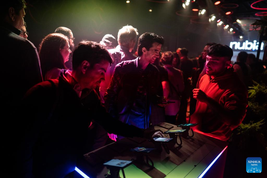 This photo taken on July 15, 2025 shows the Nubia launch event in Buenos Aires, Argentina. Chinese tech company ZTE held a product launch event in Buenos Aires on Tuesday, unveiling 10 new Nubia-branded devices, including smartphones. According to the company, all the new products are assembled in Río Grande, Tierra del Fuego Province, and became available nationwide in Argentina starting July 16. (Photo by Martin Zabala/Xinhua)