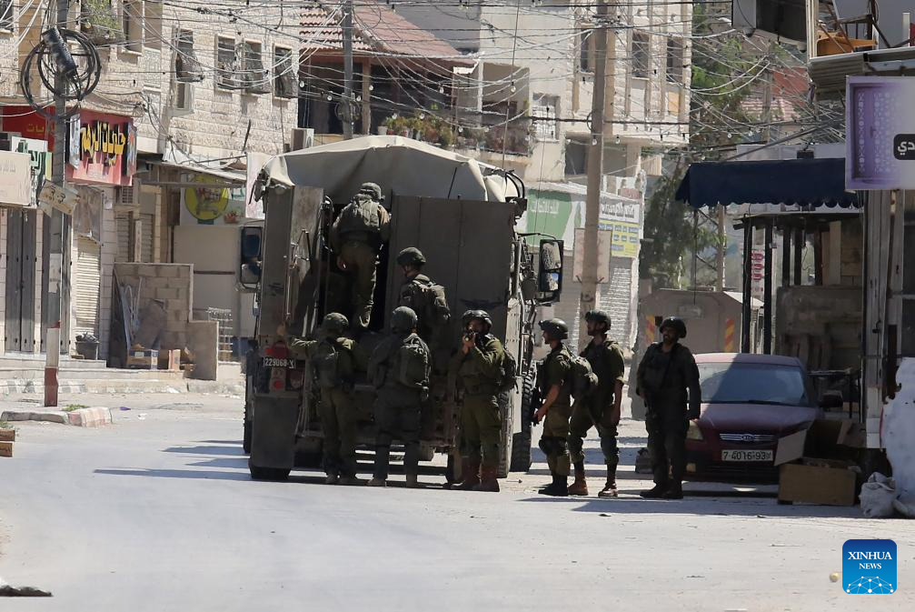 Members of Israeli forces carry out an operation in Qabatiya town, south of the West Bank city of Jenin, on July 17, 2025. (Photo by Nidal Eshtayeh/Xinhua)