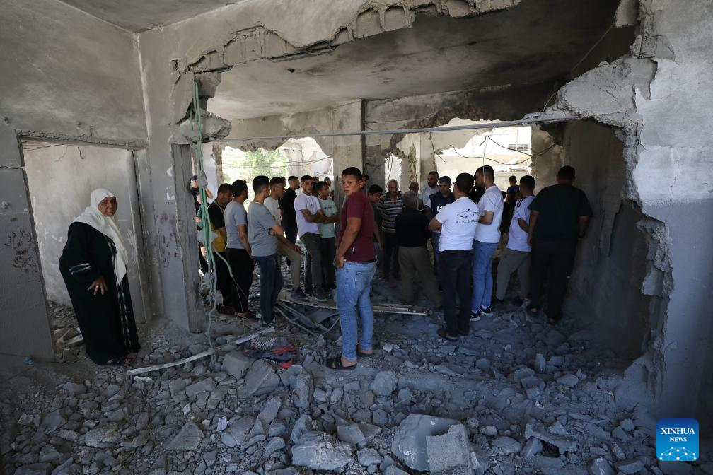 Palestinians inspect a house demolished by Israeli forces in Qabatiya town, south of the West Bank city of Jenin, on July 17, 2025. (Photo by Nidal Eshtayeh/Xinhua)