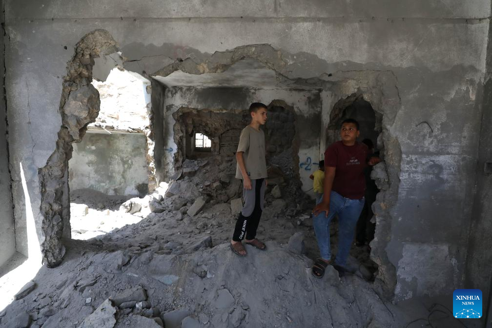 A Palestinian boy inspects a house demolished by Israeli forces in Qabatiya town, south of the West Bank city of Jenin, on July 17, 2025. (Photo by Nidal Eshtayeh/Xinhua)
