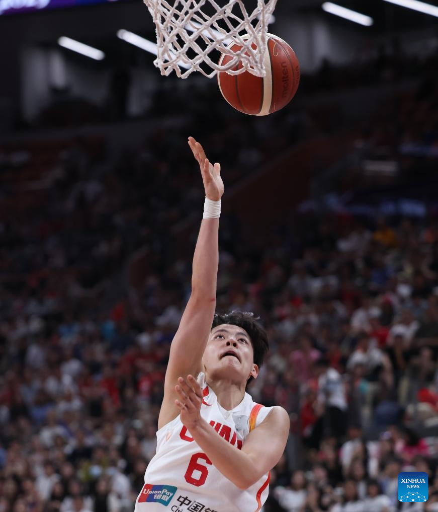 Yang Shuyu of China competes during the semifinal match between China and Japan at the FIBA Women's Asia Cup 2025 in Shenzhen, south China's Guangdong Province, July 19, 2025. (Xinhua/Mao Siqian)