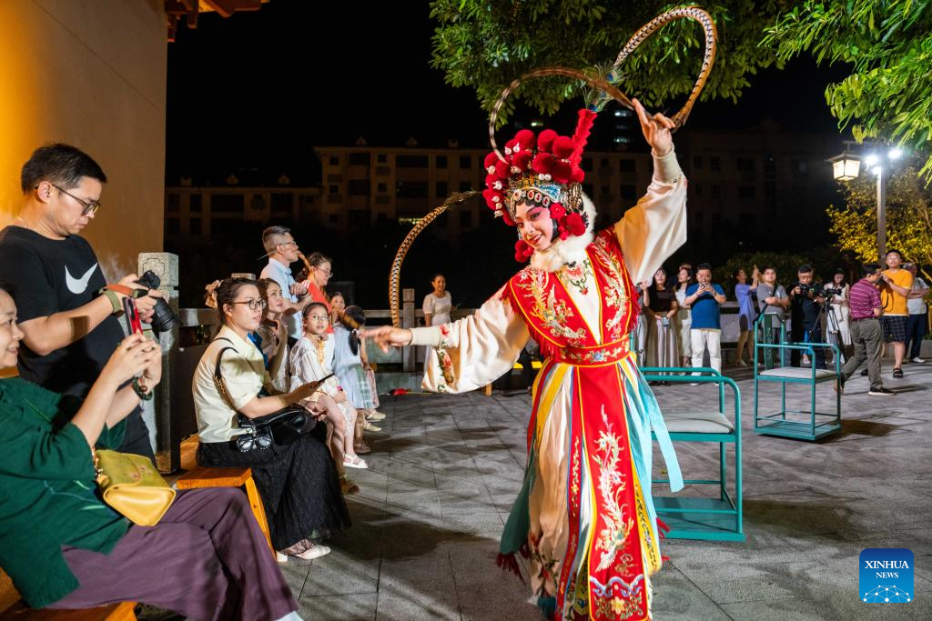 An actor interacts with audiences during an immersive Kunqu Opera show in Chenzhou City, central China's Hunan Province, July 18, 2025. The centuries-old art of Kunqu Opera has been listed by the United Nations Educational, Scientific and Cultural Organization (UNESCO) as an intangible cultural heritage. Kunqu artists are injecting modern elements to enhance its charm to younger audience today. (Xinhua/Chen Sihan)