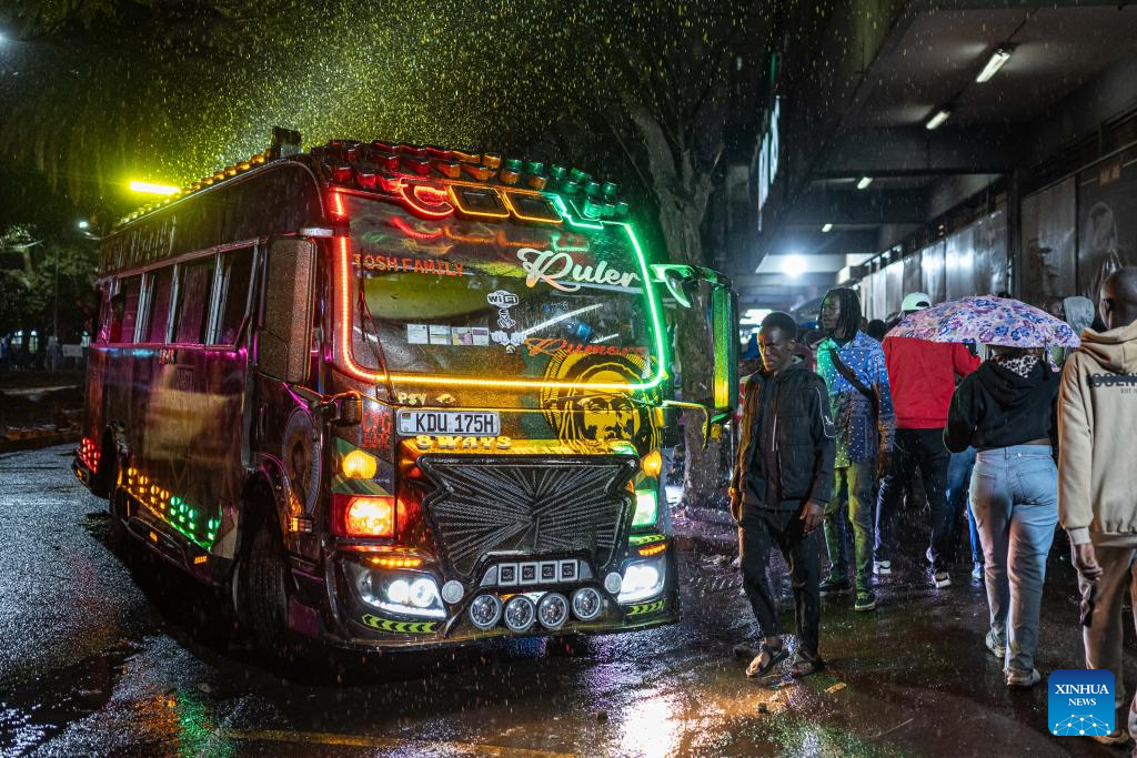The word "matatu" is a Swahili word meaning "three" which originated from the three pennies passengers used to pay when the industry began in the 1970s. (Xinhua/Wang Guansen)