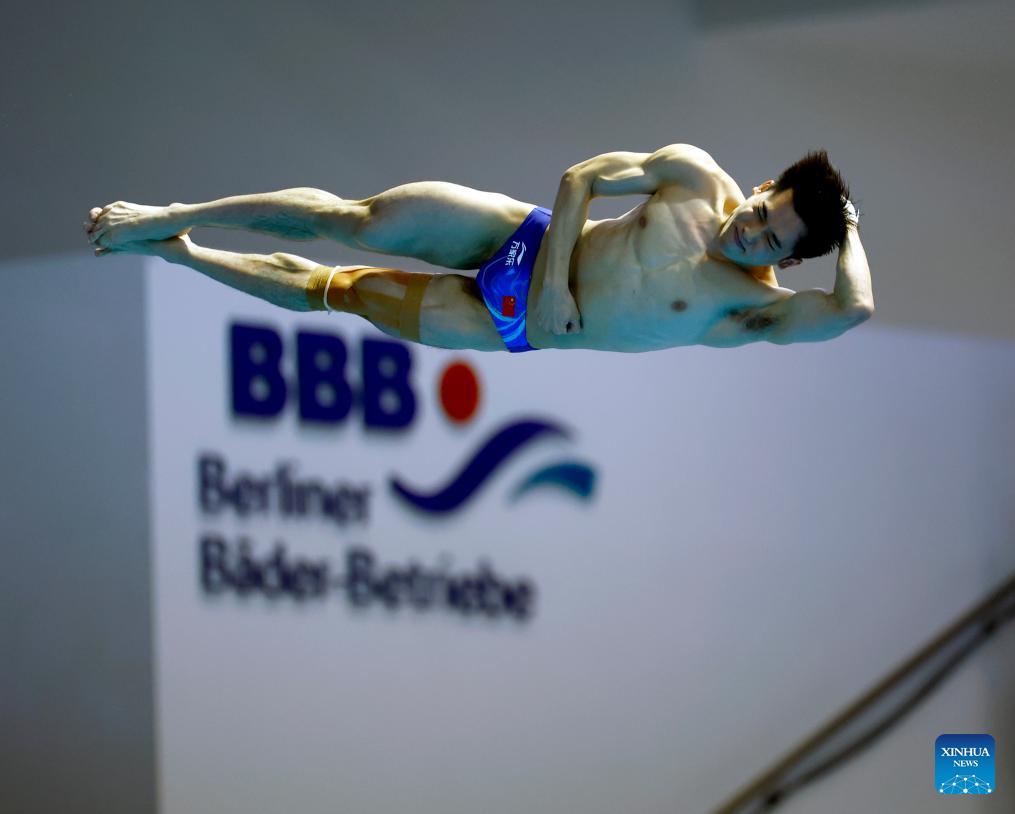 Moritz Wesemann of Germany competes during the men's 3m springboard final of diving at the Rhine-Ruhr 2025 FISU World University Games in Berlin, Germany, July 18, 2025. (Xinhua/Du Zheyu)