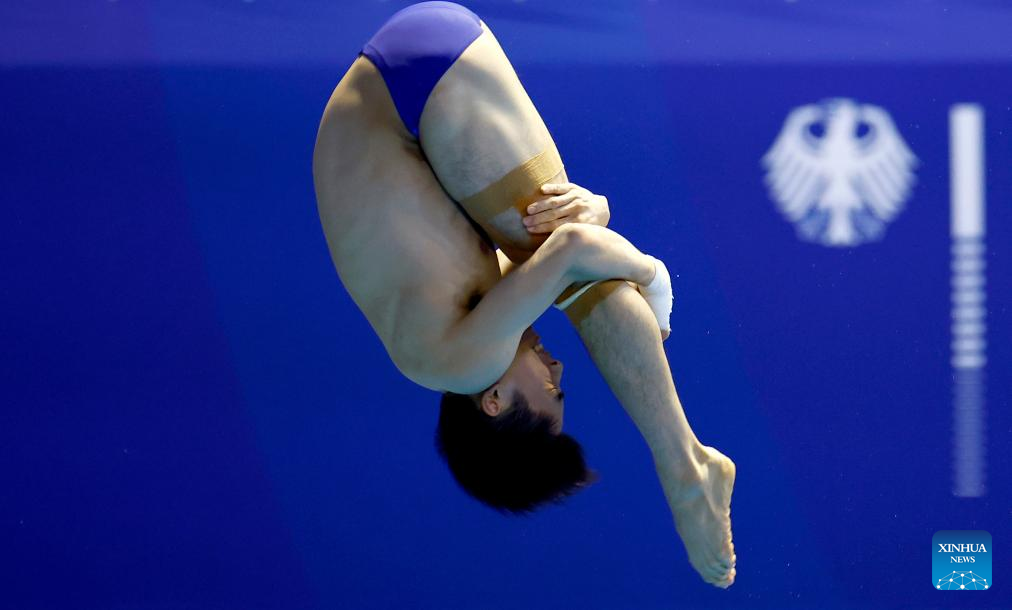 Hu Yukang of China competes during the men's 3m springboard final of diving at the Rhine-Ruhr 2025 FISU World University Games in Berlin, Germany, July 18, 2025. (Xinhua/Li Ying)