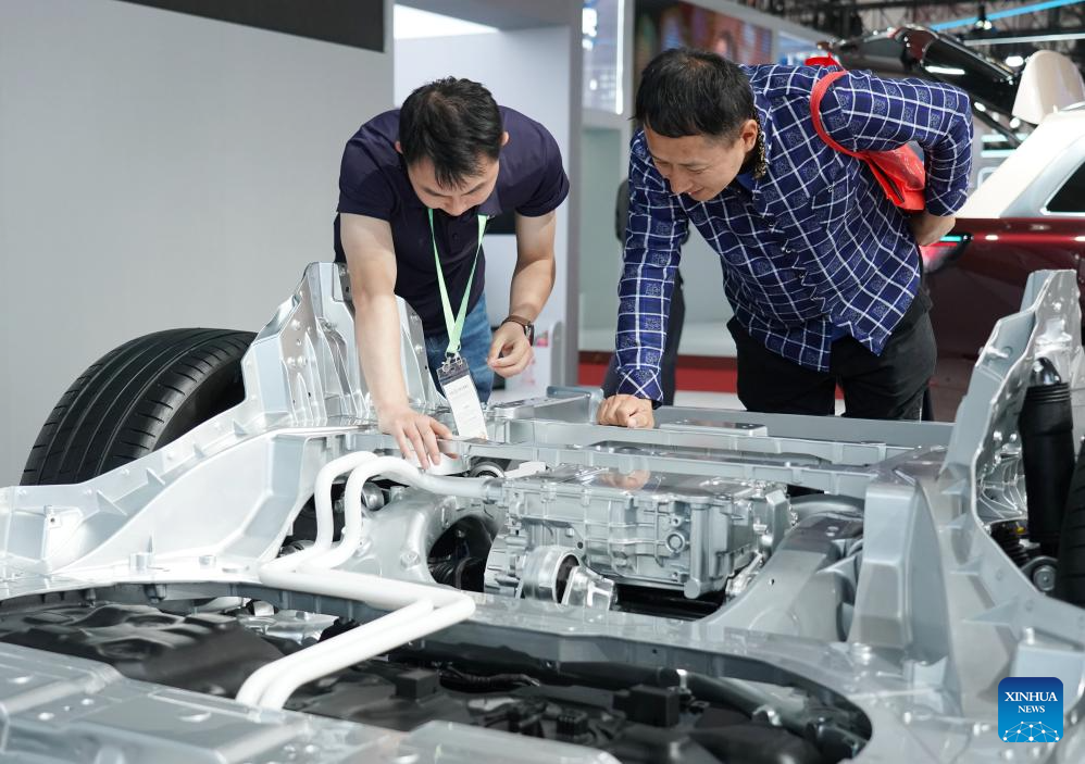 People visit the Smart Vehicle Chain area of the third China International Supply Chain Expo (CISCE) in Beijing, capital of China, July 16, 2025. At the Smart Vehicle Chain area of the third CISCE, more than 30 domestic and foreign enterprises and institutions showcased key technologies and products of the EV industry chain, demonstrating the achievements of the collaborative innovation in the sector.