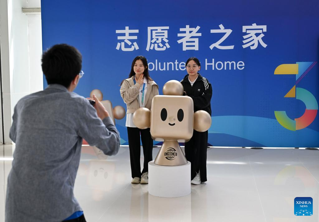 A volunteer provides services for a visitor at the third China International Supply Chain Expo (CISCE) in Beijing, capital of China, July 20, 2025. Volunteers from universities like Central University of Finance and Economics, Beijing Foreign Studies University, Minzu University of China, and Beijing International Studies University are involved in the third CISCE, which scheduled from July 16 to 20. (Xinhua/Chen Shuo)