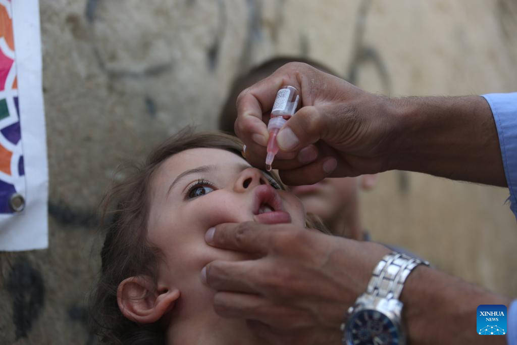 An Afghan child receives a dose of polio vaccine during a polio vaccination campaign in Kabul, Afghanistan, on July 21, 2025. The Afghan interim government's Ministry of Public Health on Monday announced a four-day vaccination campaign aimed at protecting 7.3 million children under the age of five from poliovirus. (Photo by Saifurahman Safi/Xinhua)