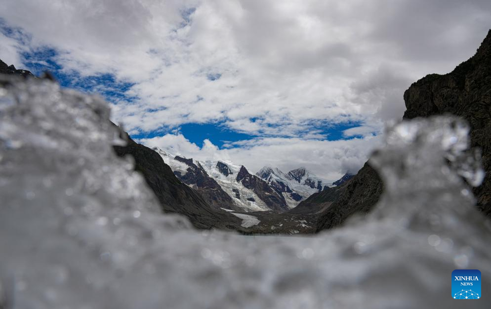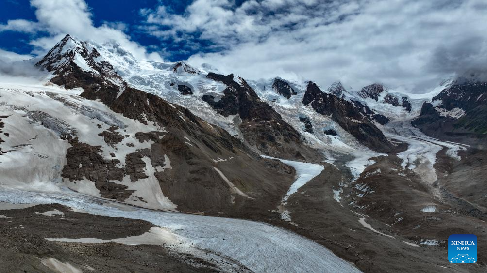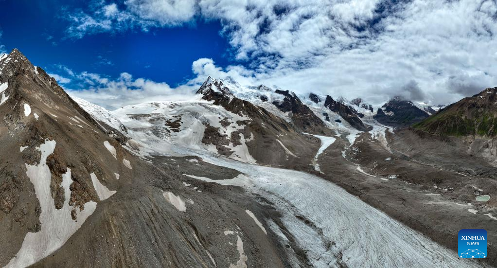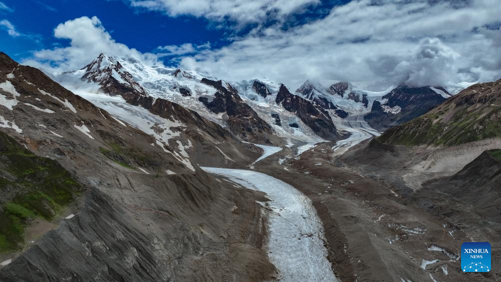 This photo taken on July 20, 2025 shows the Jang Khyi La Glacier in Banbar County of Qamdo City, southwest China's Xizang Autonomous Region. Located on the southern foot of the Nyainqentanglha Range, Banbar County sits at an average altitude of 3,500 meters, with its highest point exceeding 5,500 meters. Jang Khyi La Glacier, situated in Banbar County, serves as a primary water source for the tributaries of the upper Nujiang River and neighbors the "three-color lake," a popular scenic site in the county. (Xinhua/Jigme Dorje)