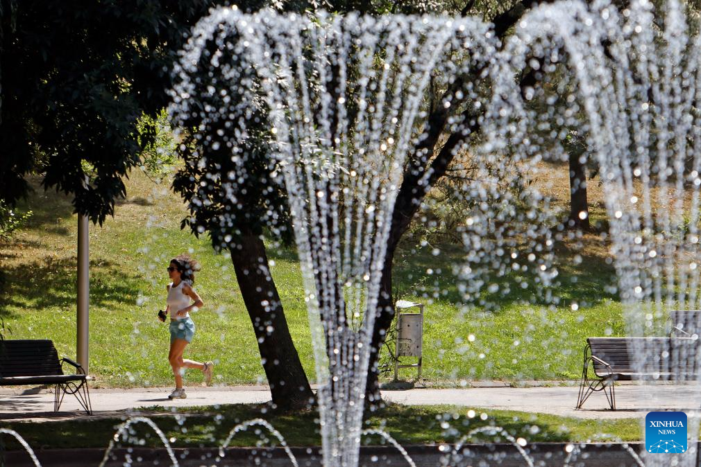 A woman jogs at a park during a hot summer day in Bucharest, Romania, on July 22, 2025. Romania's National Meteorological Administration (ANM) issued multiple weather alerts on Tuesday as the country braces for a combination of extreme heat and unstable atmospheric conditions. The national weather agency warned of red code alerts, the highest level in its color-coded warning system, for scorching heat in the capital city of Bucharest and several southern counties. Temperatures there are expected to reach 40 to 41 degrees Celsius, with high humidity leading to severe thermal discomfort. (Photo by Cristian Cristel/Xinhua)