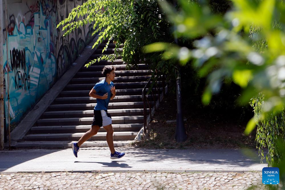 A man jogs at a park during a hot summer day in Bucharest, Romania, on July 22, 2025. Romania's National Meteorological Administration (ANM) issued multiple weather alerts on Tuesday as the country braces for a combination of extreme heat and unstable atmospheric conditions. The national weather agency warned of red code alerts, the highest level in its color-coded warning system, for scorching heat in the capital city of Bucharest and several southern counties. Temperatures there are expected to reach 40 to 41 degrees Celsius, with high humidity leading to severe thermal discomfort. (Photo by Cristian Cristel/Xinhua)