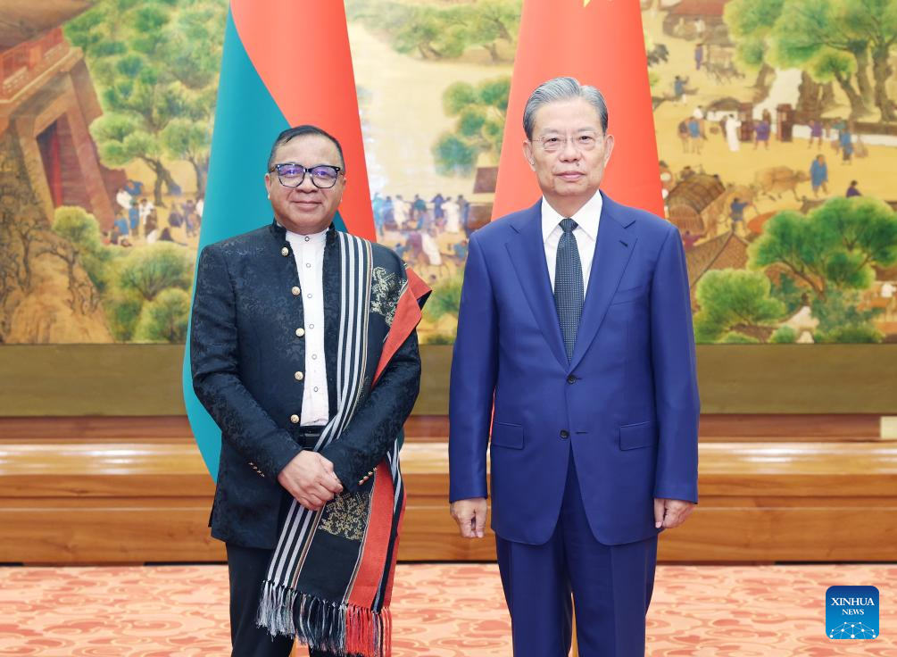 Zhao Leji, chairman of the National People's Congress Standing Committee, meets with Richard Ravalomanana, president of the Senate of Madagascar, in Beijing, capital of China, July 22, 2025. (Xinhua/Yao Dawei)
