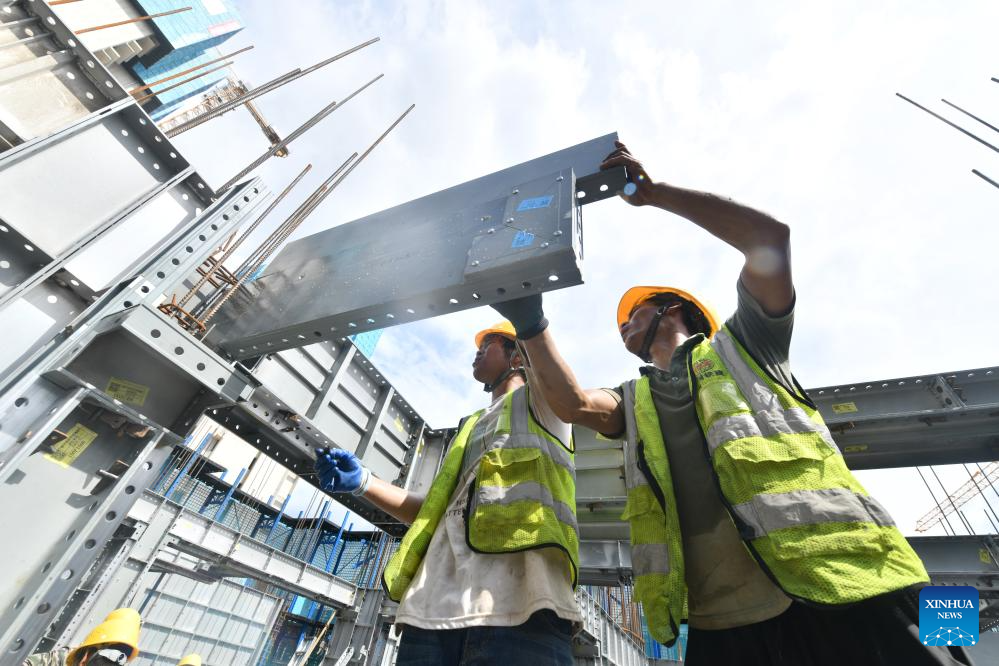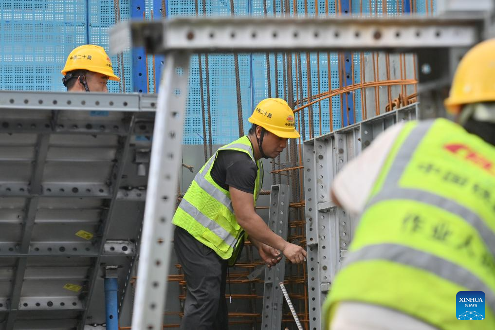 Workers work at a construction site of a urban village renovation project in Nanning City, south China's Guangxi Zhuang Autonomous Region, July 21, 2025. Since this year on, Guangxi's provincial department of finance has raised a total of about 3.4 billion yuan financial subsidy (about 473.9 million U.S. dollars) to support the construction of affordable housing projects in urban areas, which has improved the public demand for high-quality housing. (Xinhua/Huang Xiaobang)