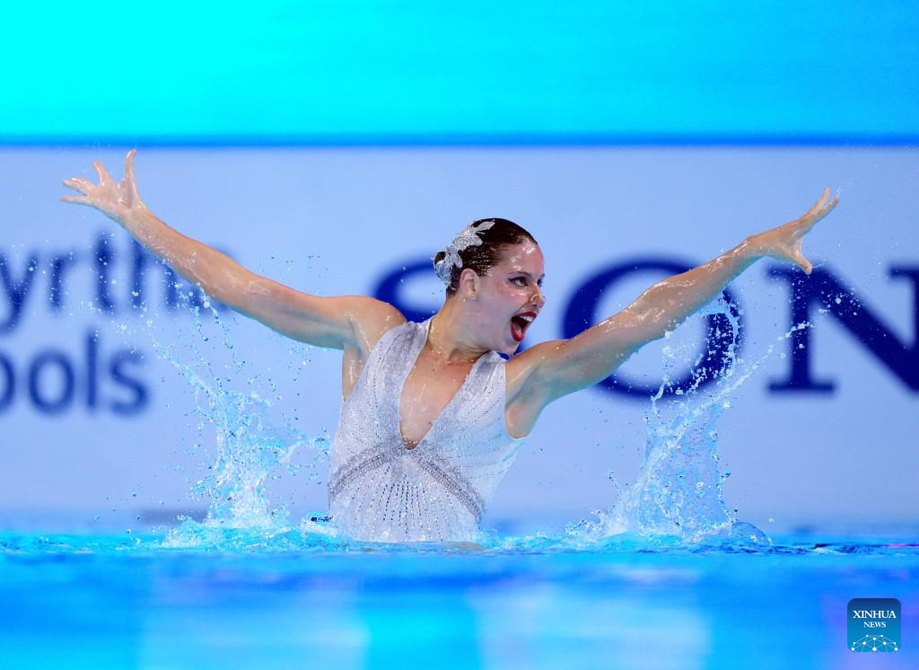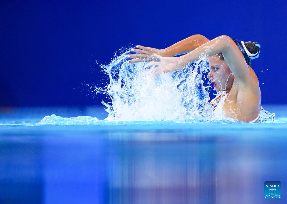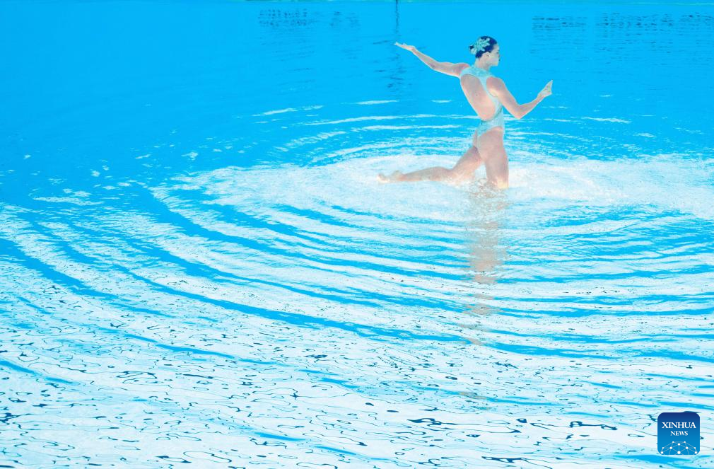 Iris Tio Casas of Spain performs during the women's solo free final of artistic swimming at the World Aquatics Championships in Singapore, July 22, 2025. (Xinhua/Xue Yuge)
