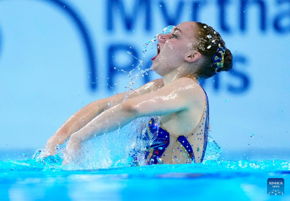 Zoi Karangelou of Greece performs during the women's solo free final of artistic swimming at the World Aquatics Championships in Singapore, July 22, 2025. (Xinhua/Luo Yuan)