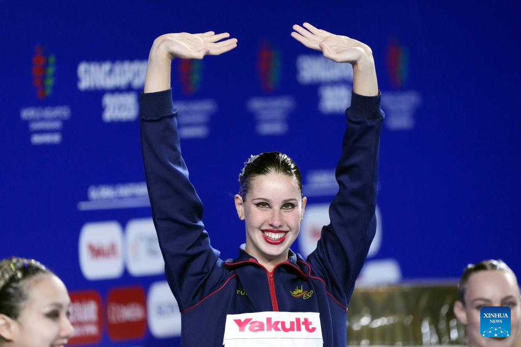 Iris Tio Casas of Spain performs during the women's solo free final of artistic swimming at the World Aquatics Championships in Singapore, July 22, 2025. (Xinhua/Luo Yuan)