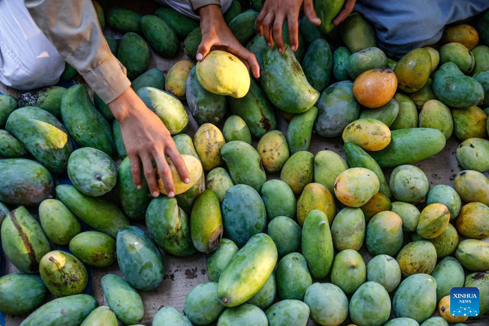 This photo taken on July 22, 2025 shows newly-harvested mangoes at a farm in Ismailia Governorate, Egypt. Mangoes have entered harvest season in Egypt. (Xinhua/Ahmed Gomaa)