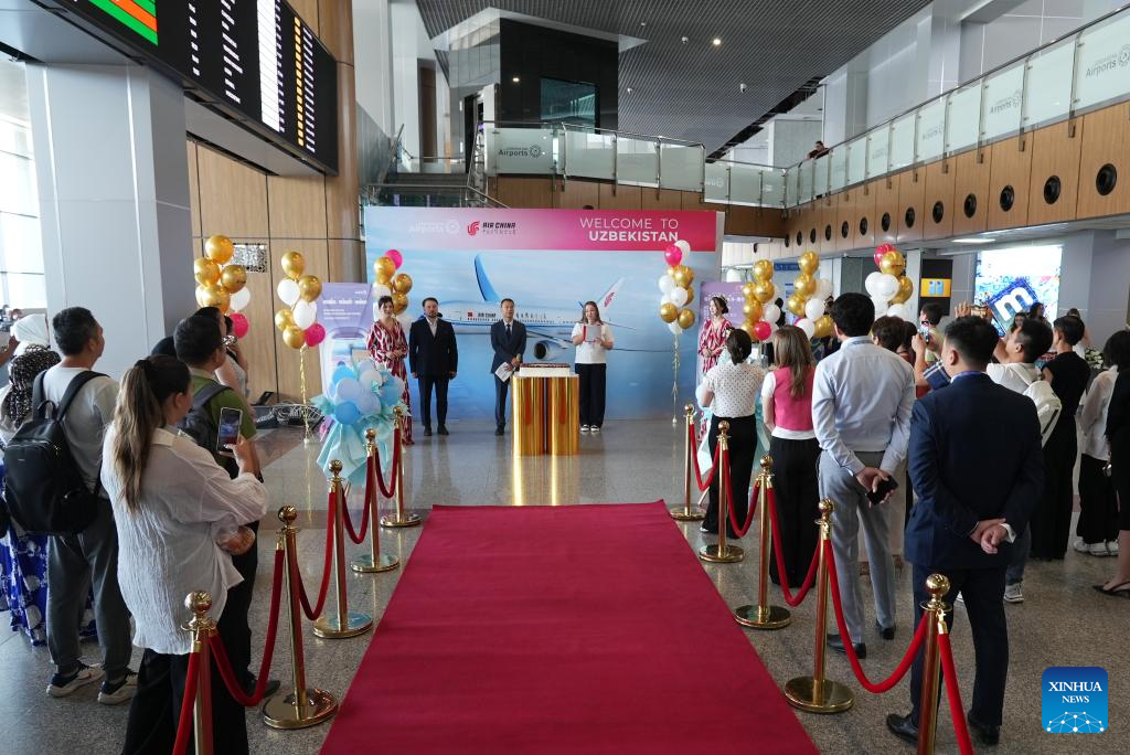 The inaugural flight landed on Tuesday at Tashkent International Airport, where a ceremony was held.