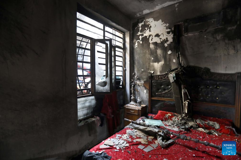 Photo taken on July 23, 2025 shows the bedroom of a house after a fire in Baghdad, Iraq. A fire broke out in a civilian house in eastern Baghdad on Wednesday, killing at least four and severely injuring two others, a source from the Iraqi Interior Ministry told Xinhua. (Xinhua/Khalil Dawood)