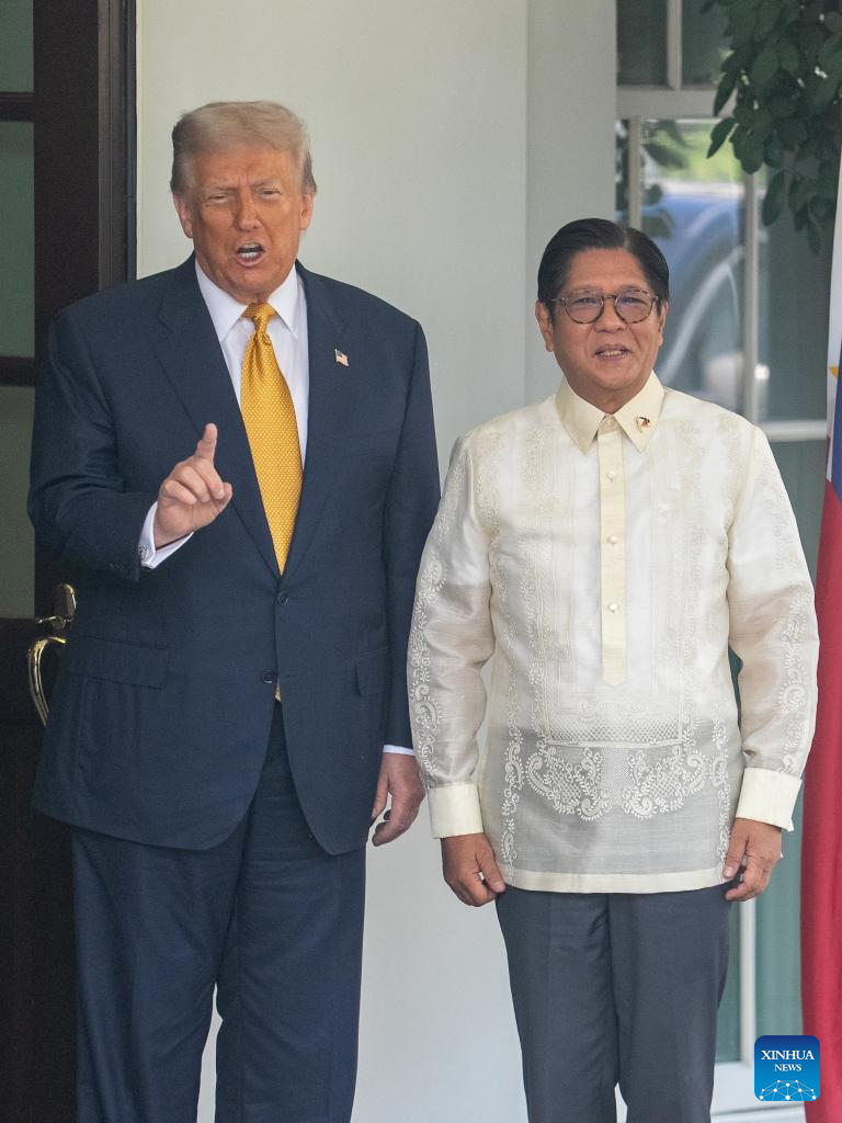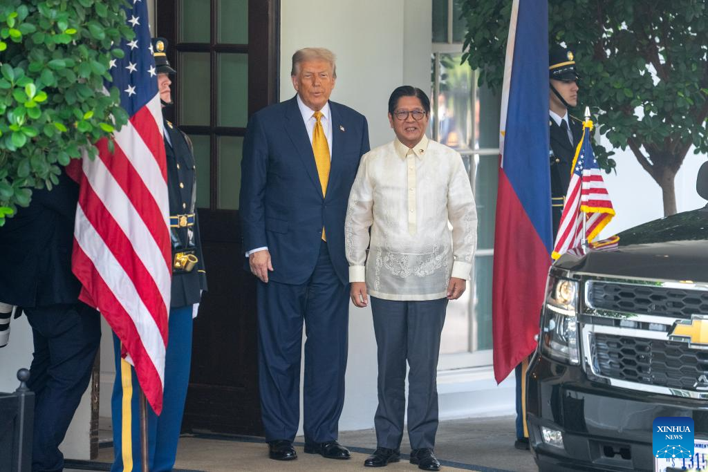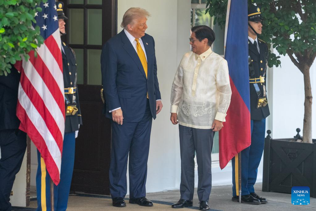 U.S. President Donald Trump (2nd L) welcomes Philippine President Ferdinand Romualdez Marcos Jr. (2nd R) at the White House in Washington, D.C., the United States, on July 22, 2025. (Xinhua/Hu Yousong)