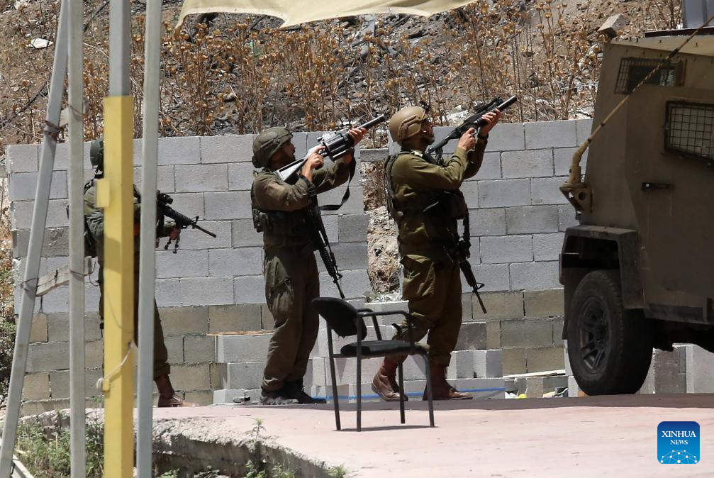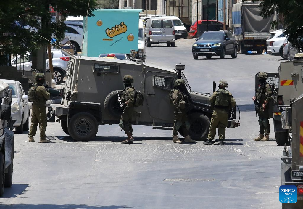 Members of Israeli forces are seen during a military operation in the West Bank city of Nablus, on July 23, 2025. (Photo by Nidal Eshtayeh/Xinhua)