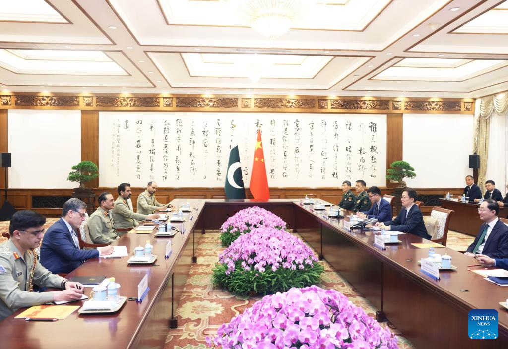 Chinese Vice President Han Zheng meets with Pakistani Chief of Army Staff Asim Munir in Beijing, capital of China, July 25, 2025. (Xinhua/Liu Weibing)