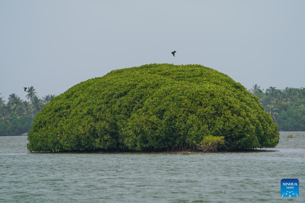 This photo taken on July 25, 2025 shows mangroves near the lagoon in Negombo, Sri Lanka. July 26 marks the International Day for the Conservation of the Mangrove Ecosystem. Sri Lanka's mangroves play an important role in purifying seawater, buffering coastal storms, sequestering carbon and sustaining biodiversity. (Photo by Thilina Kaluthotage/Xinhua)